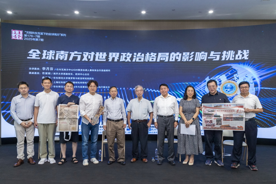 【导读】9月6日,文汇讲堂全球南方系列十讲之第七讲《全球南方对世界政治格局的影响与挑战》在上报集团成功举办。日内瓦南方中心G20事务协调人兼发展融资和南南合作高级顾问李月芬做视频演讲,南开大学讲席教授、欧洲研究中心主任佟家栋、上海社科院国际问题研究所研究员余建华、华东师范大学俄罗斯与欧亚研究院院长曲文轶、华东师范大学周边合作与发展协同创新中心执行副主任万青松应邀展开圆桌讨论,复旦大学一带一路与全球治理研究院常务副院长黄仁伟发表点评。